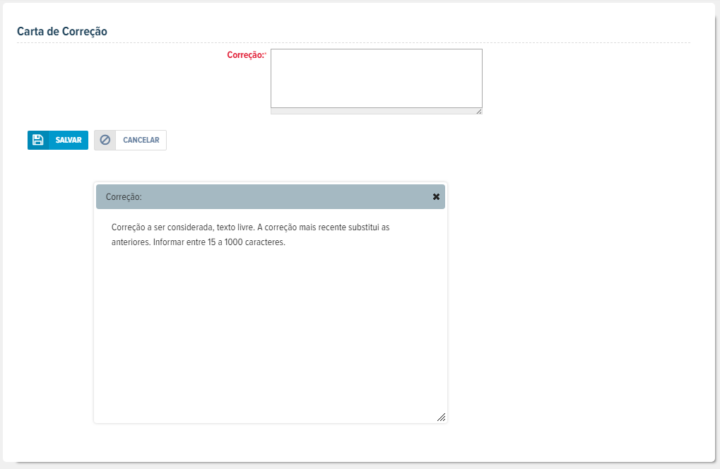 Ao finalizar, clique em Salvar que sua carta será emitida para SEFAZ.